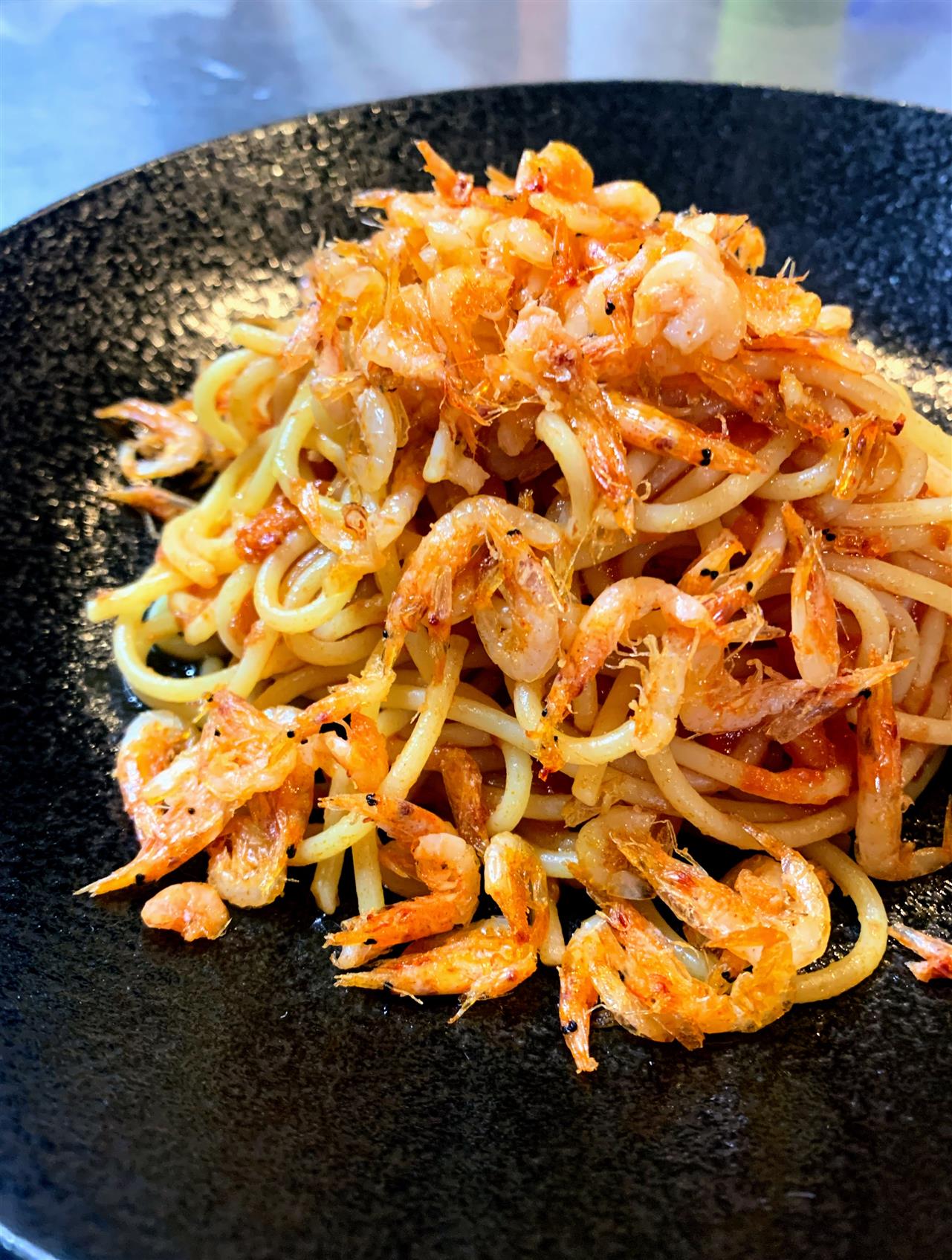 桜エビの季節がやってきました✨香ばしく素揚げにした桜エビをピリ辛トマトパスタにたっぷりと😋