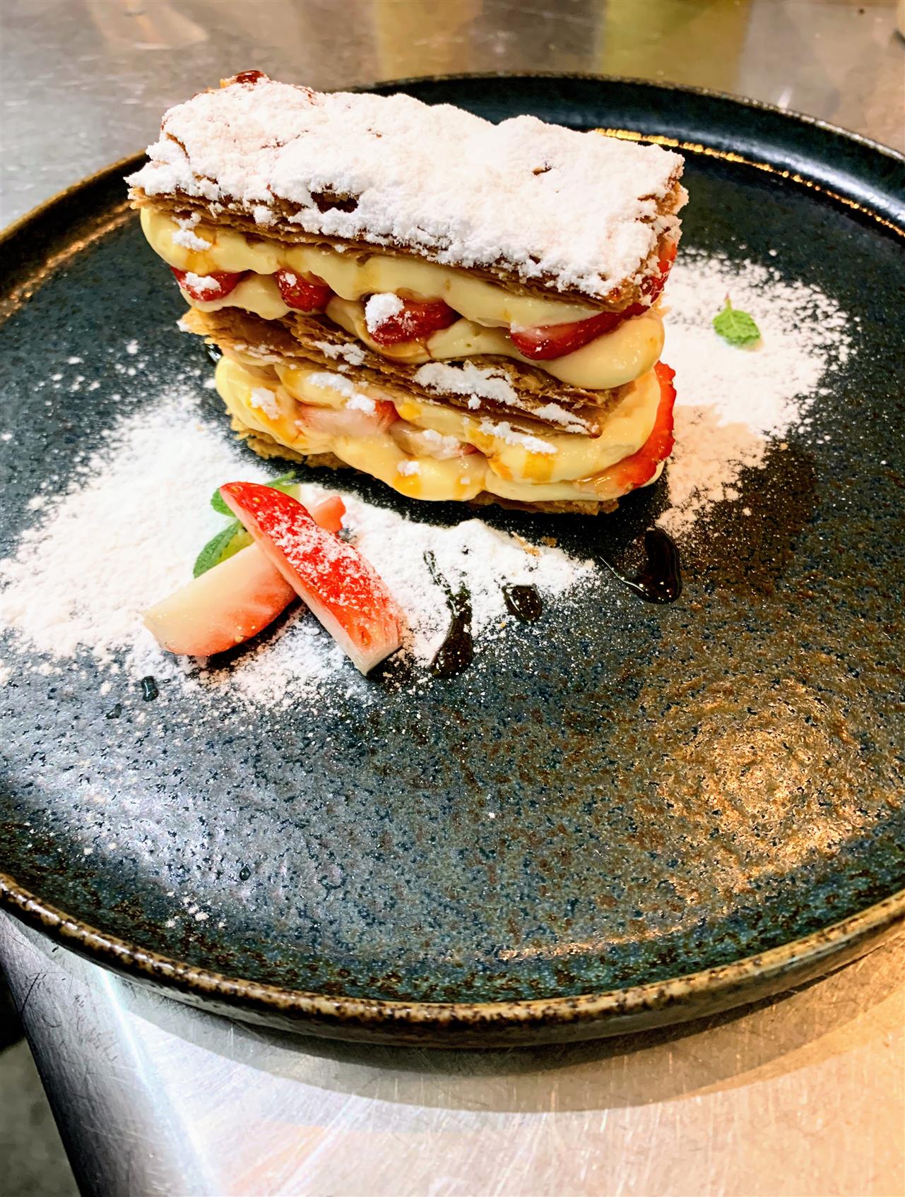 サクホロのパイにたっぷりカスタードと苺を挟んで🍓