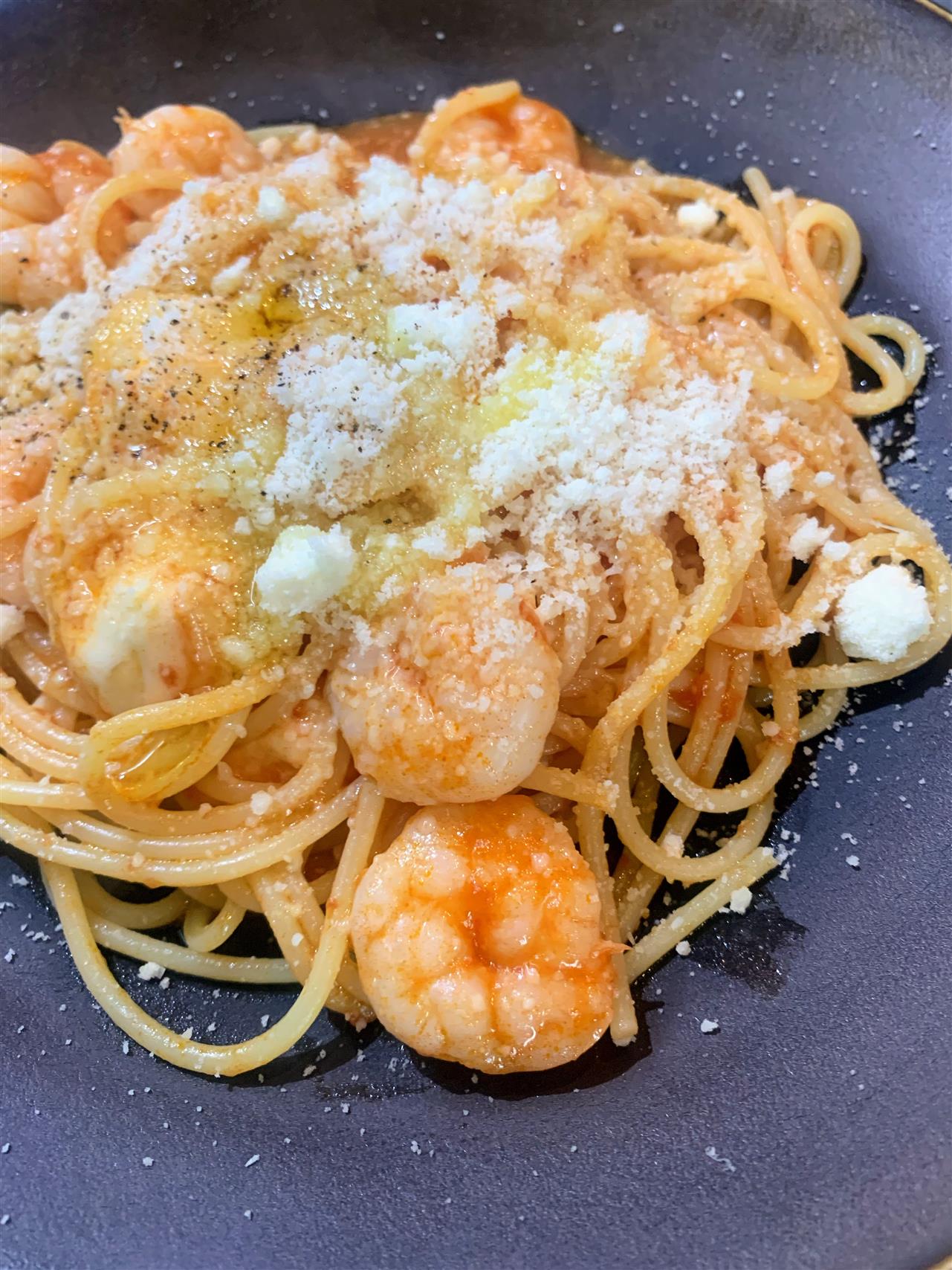 プリプリの小海老とミルキーなモッツァレラチーズがトマトソースに絡みます😋