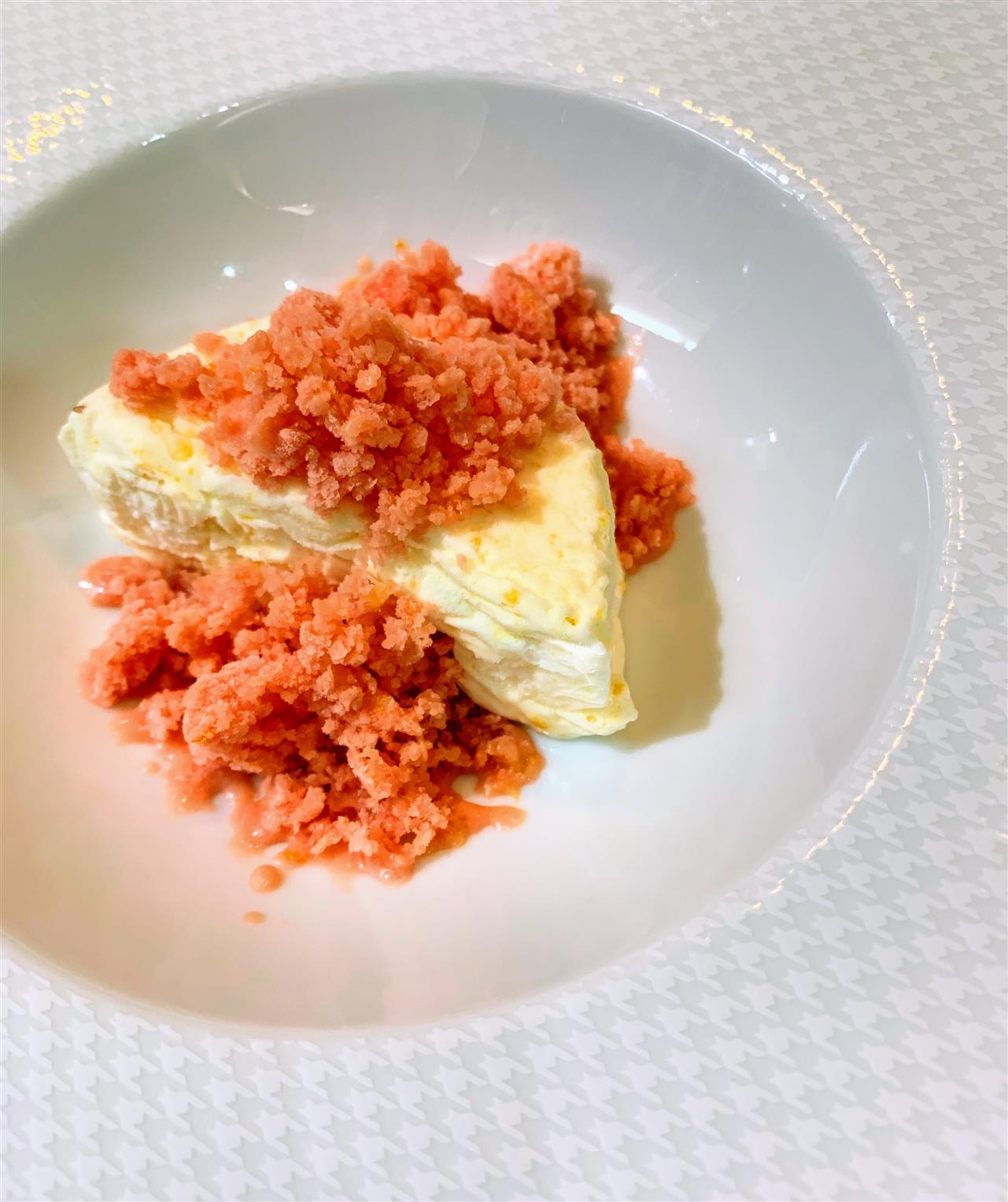 『レモンのセミフレッドとブラッドオレンジのグラニテ』マイヤーレモンを冷たいセミフレッドに。さっぱりとグラニテ(シャーベット)を合わせて🍋&🍊