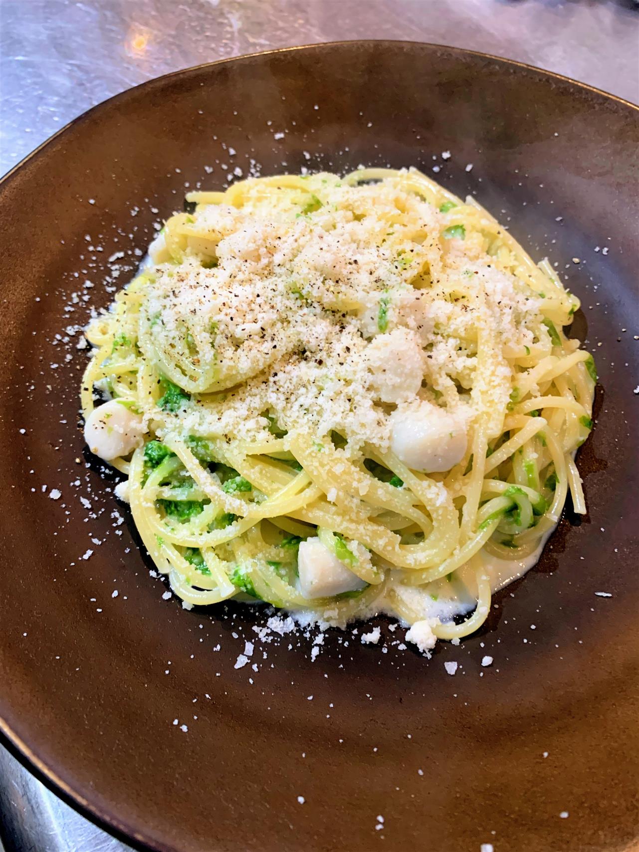 『浦村産真牡蠣と白葱のクリームソーススパゲティ』