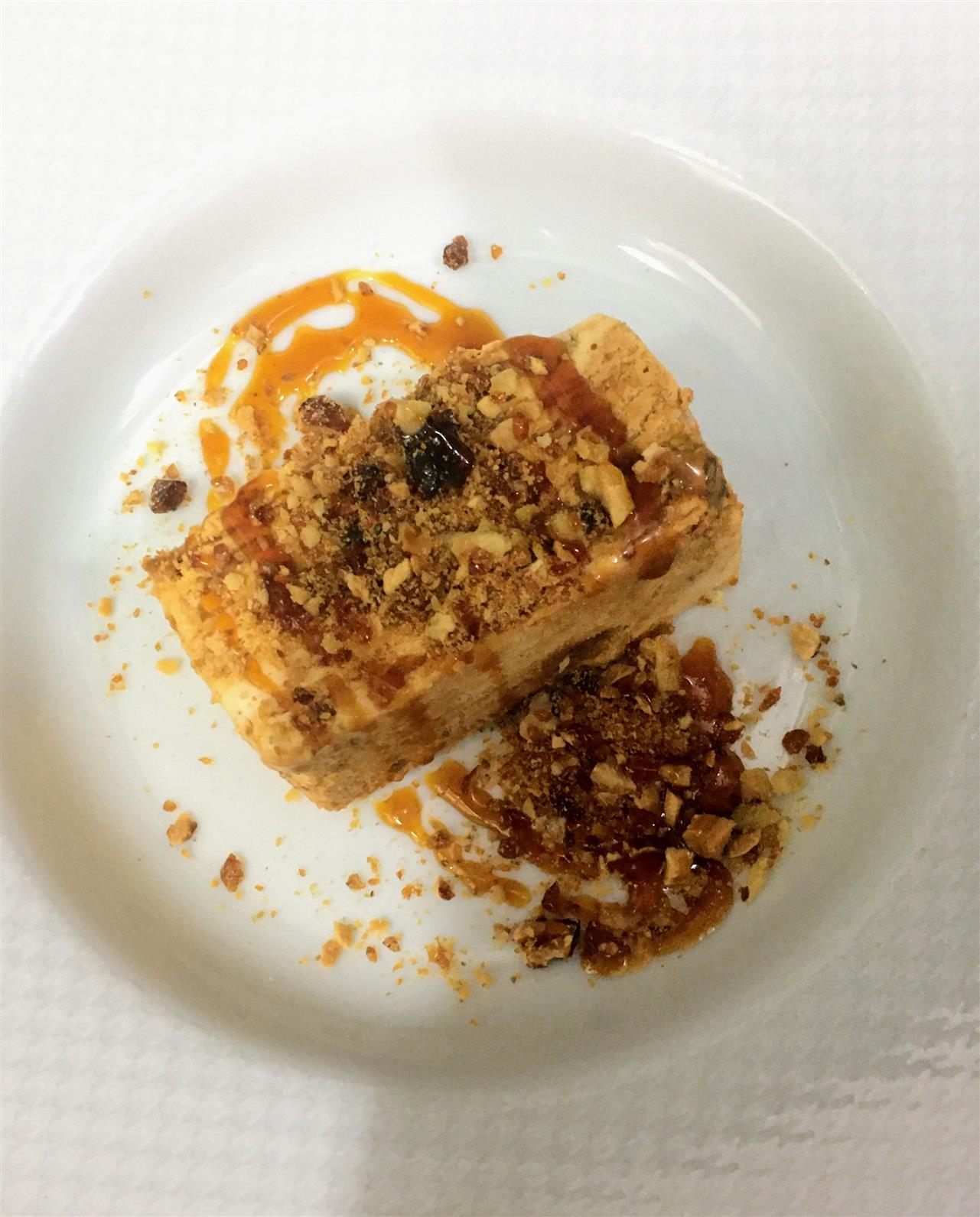 カリッと香ばしいナッツと、マーブルに混ざったほろ苦キャラメルソースの冷菓。
