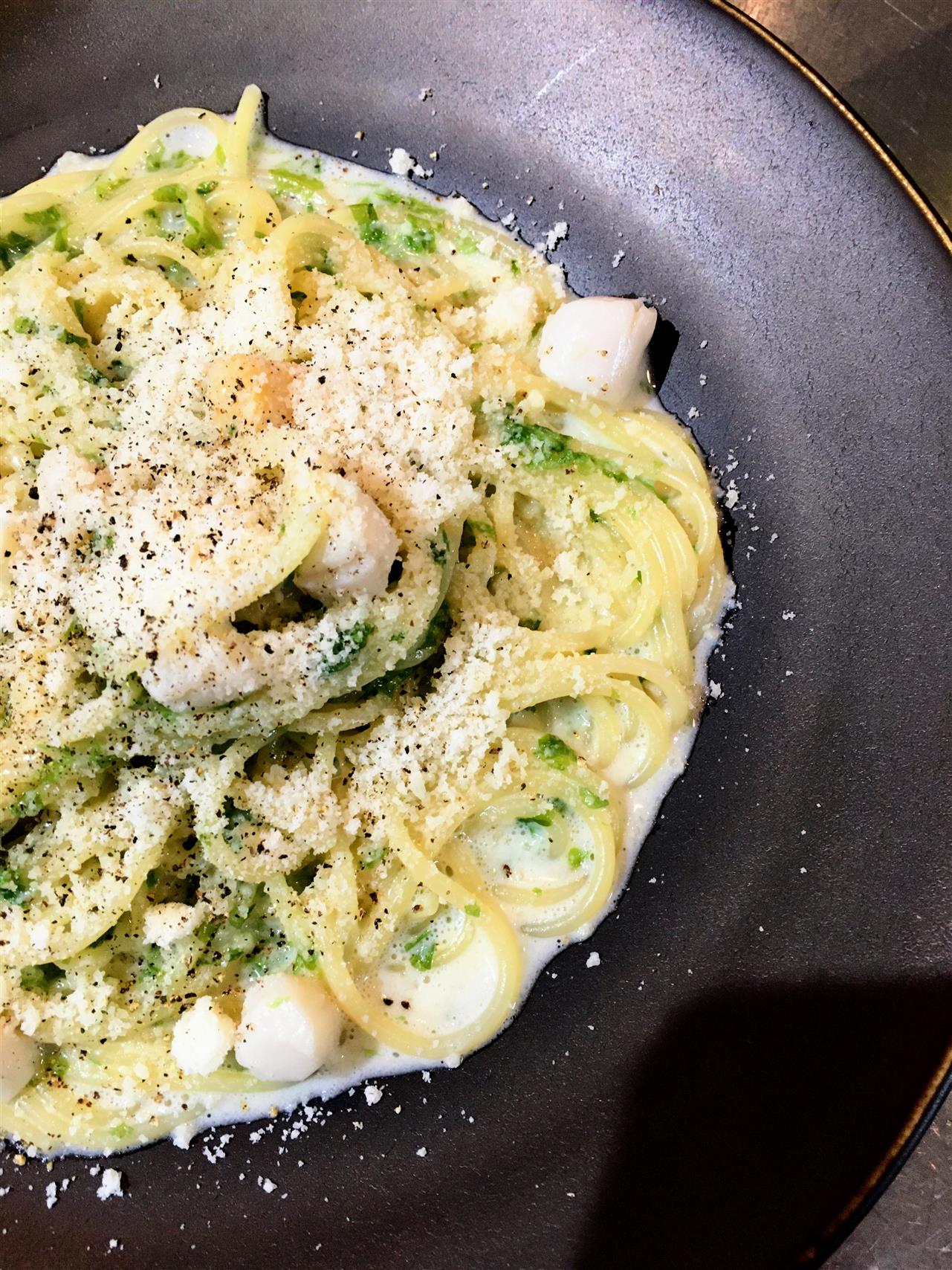 『三重県産アオサ海苔と小柱のクリームソーススパゲティ』クリームとアオサ海苔!ハマります✨