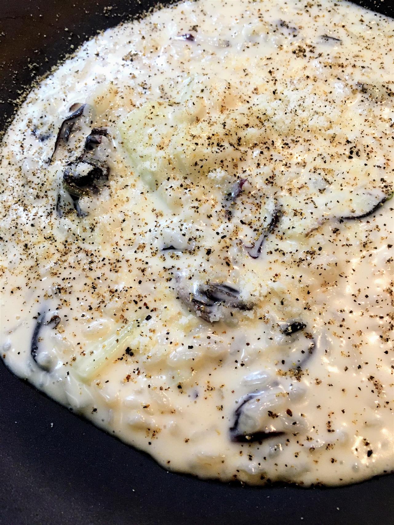 『パルミジャーノチーズとゴーダチーズ、イタリア産タルティーボのクリームリゾット』