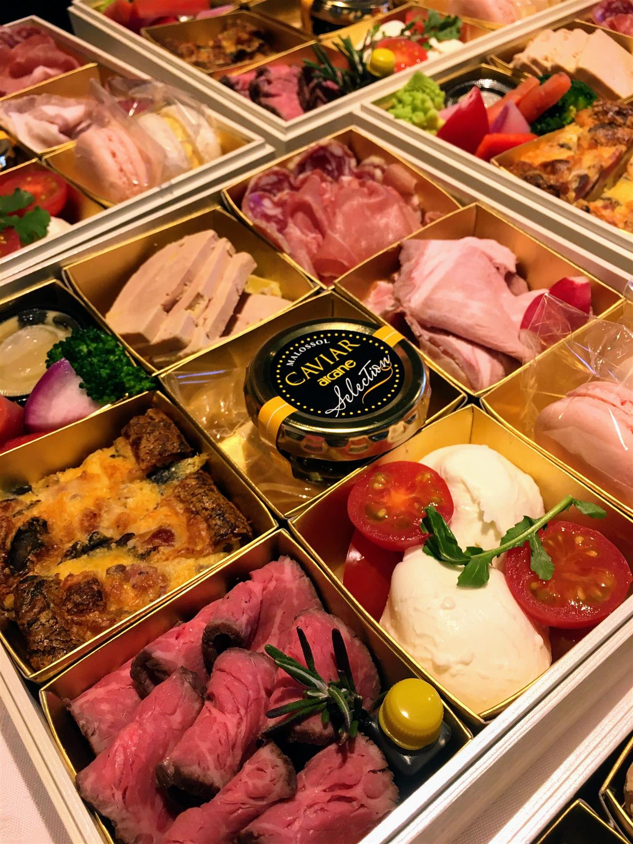近藤ファームの無農薬野菜、伊勢海老や生ハム、チーズ、自家製フォカッチャ、マカロンなどを、