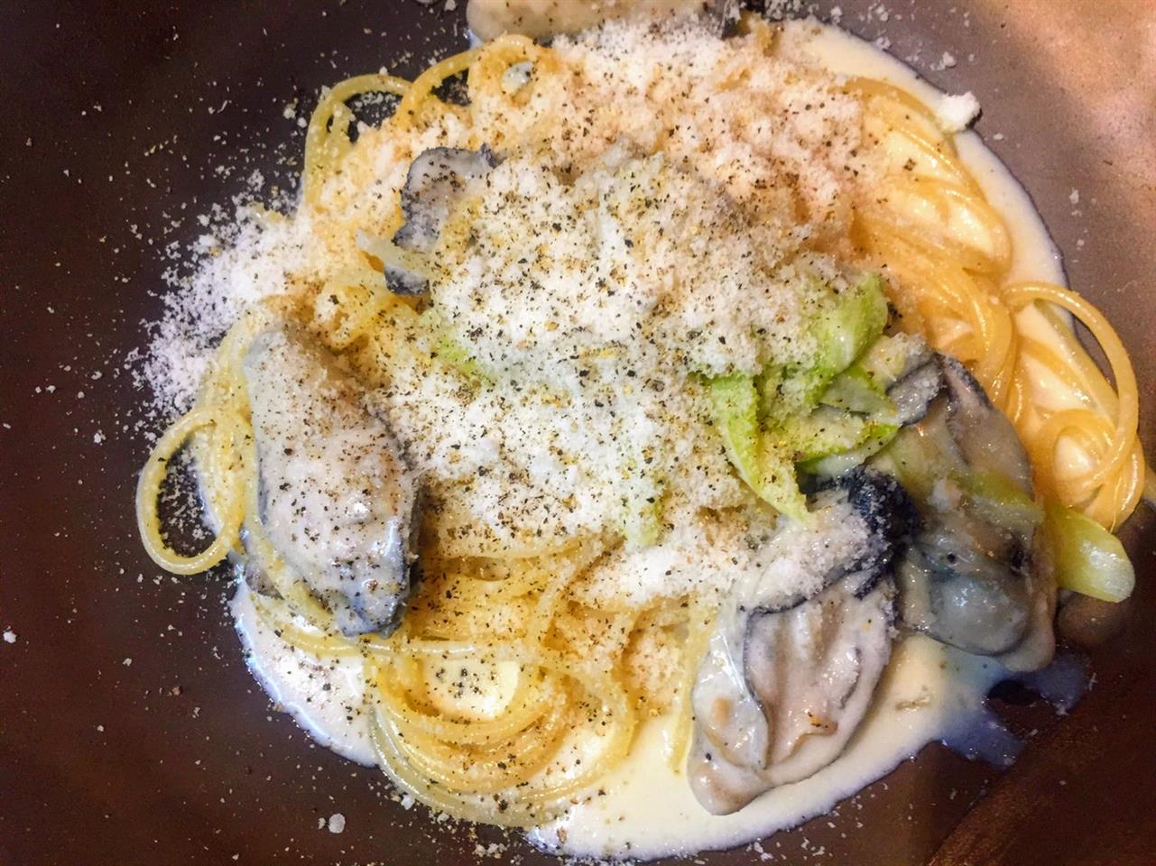 『浦村産真牡蠣と白葱のクリームソーススパゲティ』