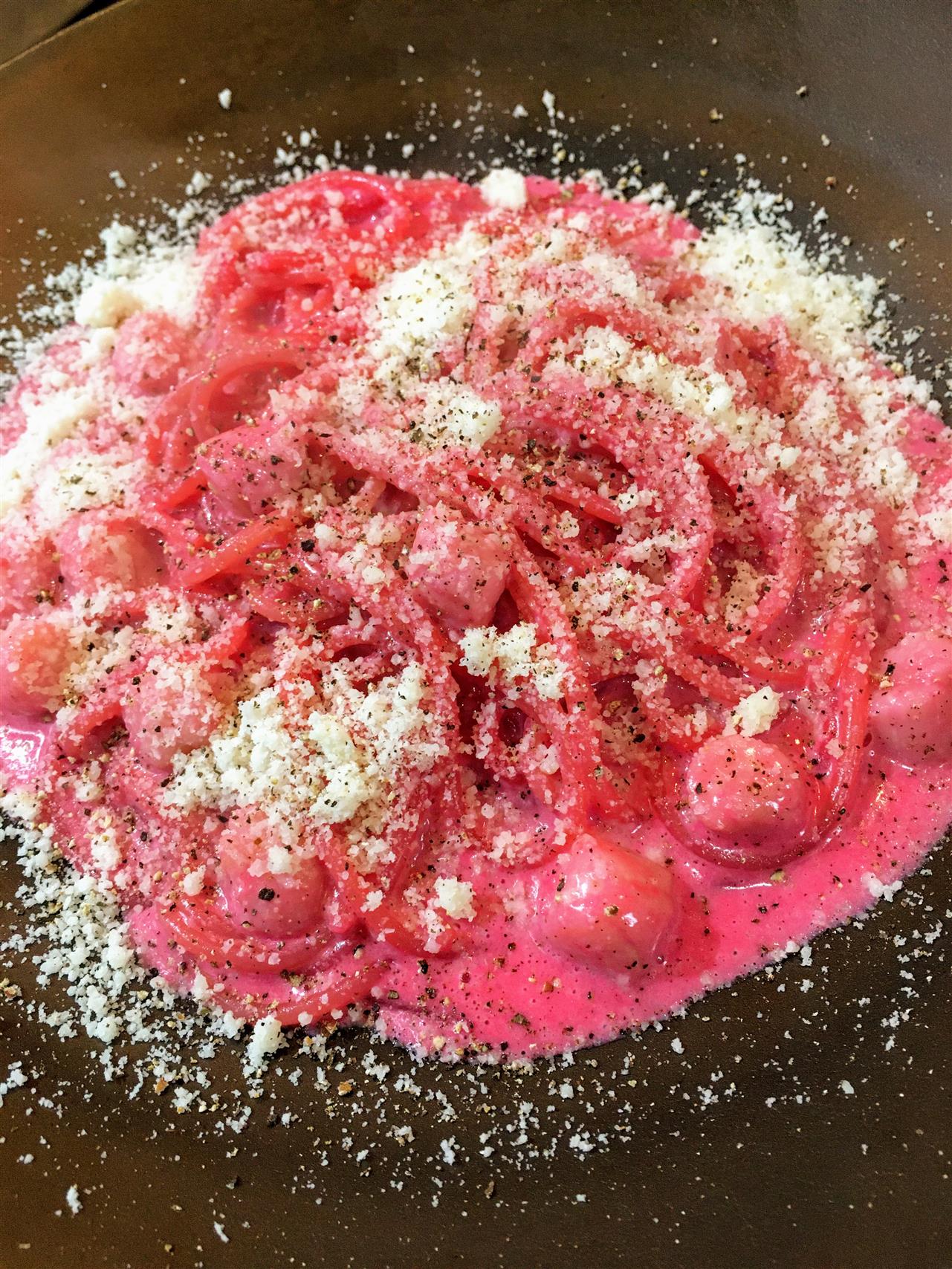 鮮やかなビーツのピンク色に染まった人気のパスタ!