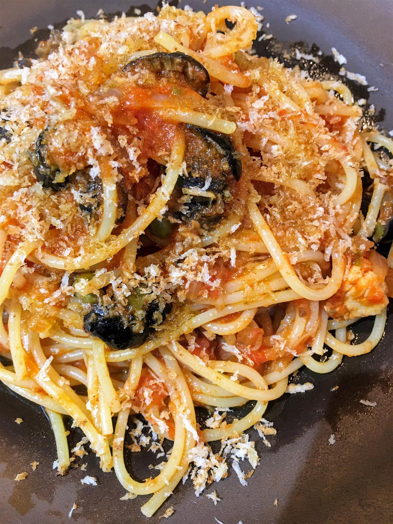 『"プッタネスカ"魚介とオリーブのピリ辛トマトソーススパゲティ』