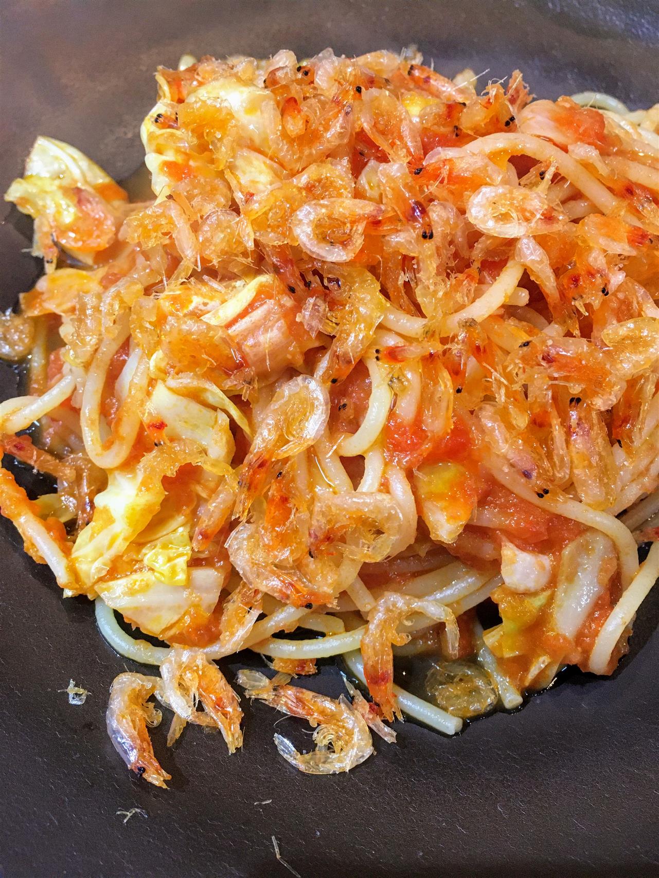 『桜海老と春キャベツのピリ辛トマトソーススパゲティ』